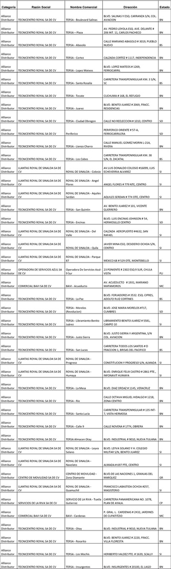Cobertura: Nivel Nacional (República Mexicana), en los distribuidores exclusivos de la marca MICHELIN®, ver Anexo A.